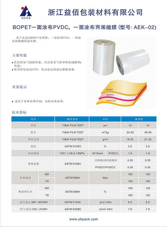 Product performance: high barrier and excellent fragrance retention; Good printability and composability; Excellent puncture resistance; Resistant to boiling at 100 degrees Celsius without turning white. Product application: Composite with PE